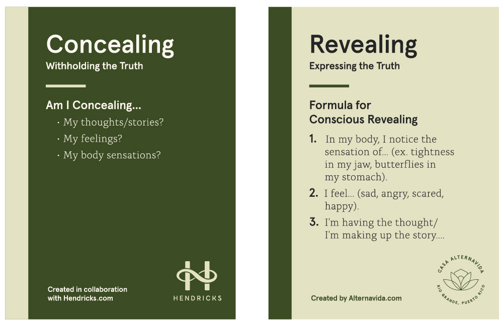 Choosing to reveal rather than conceal is an empowering practice. When we conceal or withhold a communication we create disruptions in our personal experience of feeling in flow and harmony. We also create break-points in our relationships.